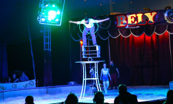 Auch preisgekrönte Nummern sind Teil des Programms. Kevin Sperlich, der sich assistiert von Nadjana auf der dreistöckigen Rola Bola-Rolle balancierend auch noch durch zwei Reifen schlängelt, holte sich den zweiten Platz des Wiesbadener Circusfestivals. Auch die Franksche Jockey-Reiterei, für die die Familie seit Generationen bekannt ist, darf in immer wieder neuen Variationen nicht im Programm fehlen.