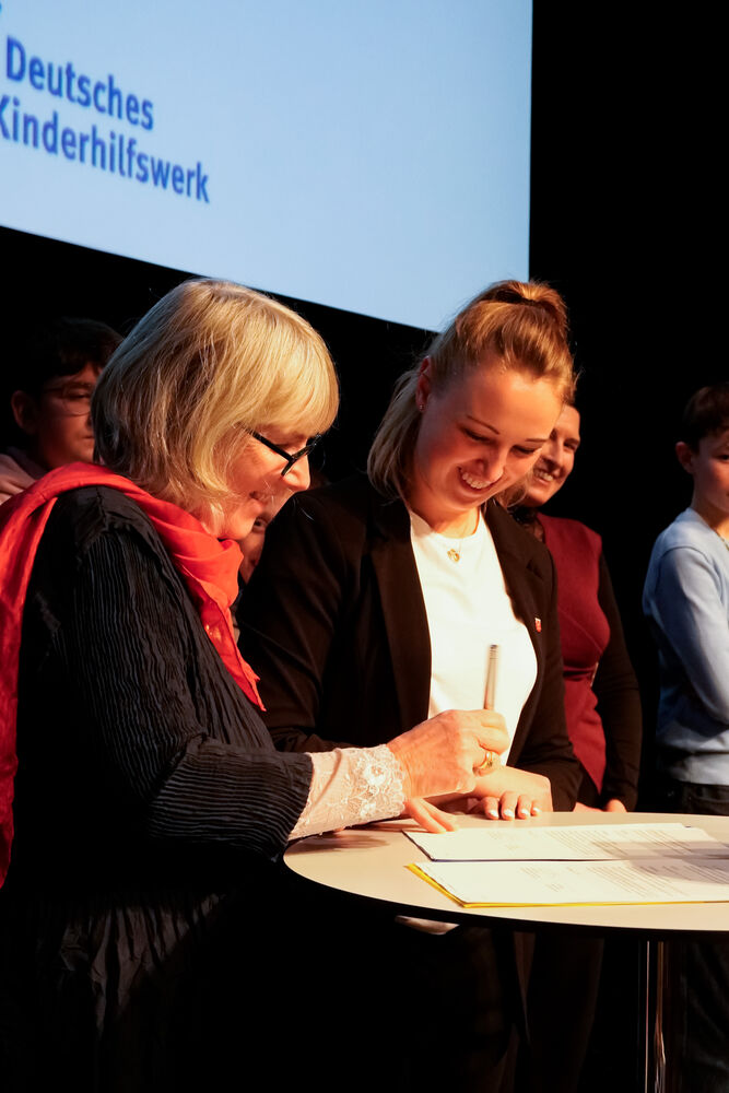 Dabei kamen bedeutende Rednerinnen zu Wort, aber vor allem traten die Kinder immer wieder ins Rampenlicht. Mit Gitarrenbegleitung von Annika Schubert sang der Remchinger Kinderchor ein Lied nach dem anderen. Neben Staatssekretärin Ute Leidig vom Ministerium für Soziales, Gesundheit und Integration Baden-Württemberg sprach auch Bürgermeisterin Julia Wieland. Letztere betonte: „Dass wir diesen Meilenstein erreichen konnten, ist das Werk vieler kleiner und großer helfender Hände. Kinder haben Rechte – auch bei uns in Remchingen. Deshalb tun wir viel, damit es ihnen in unserer Gemeinde gut geht.“