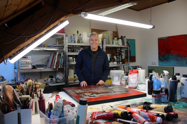 Dabei bringt er nicht nur Farbe auf die Leinwände, sondern insbesondere Strukturen, die das Markenzeichen seiner meist großformatigen Werke sind. Dazu benutzt der Unruheständler unterschiedliche Materialien wie Zement, Sand, gefaltete Papiere, aber auch Marmormehl oder Bitumen. Einzeln oder in Kombination ergeben sie auf der Leinwand beabsichtigte ebenso wie zufällige Strukturen. „Mir gefallen Strukturen, egal ob auf der Straße, auf einer Baustelle, an einem abgebrochenen Haus oder in der Natur“, verdeutlicht der passionierte Künstler, „Manche Strukturen ergeben sich ganz bewusst auf den Bildern, andere kommen mit der Zeit dazu.“