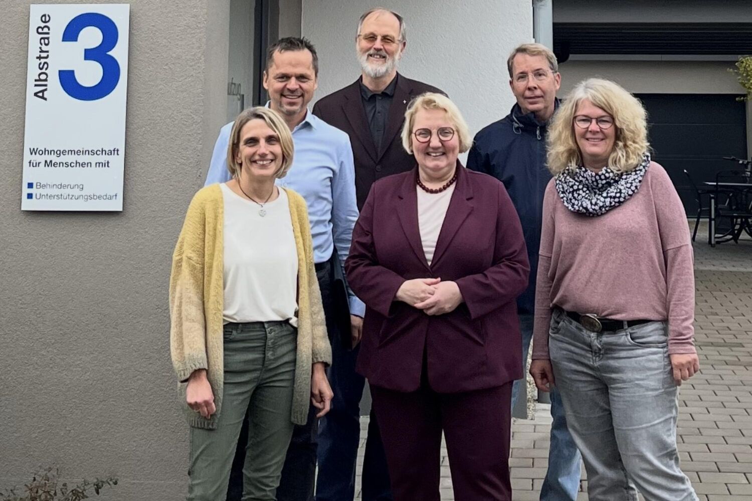 Anschließend besuchte sie die WG unterm Dach, eine Wohngemeinschaft für Menschen mit Behinderung. Dabei informierte sie sich über den Alltag der Bewohnerinnen und Bewohner und die Arbeit der Betreuungskräfte. Im Gespräch wurden auch Themen wie die Bedeutung von sozialem Engagement und die Herausforderungen in der Pflege und der Betreuung angesprochen.