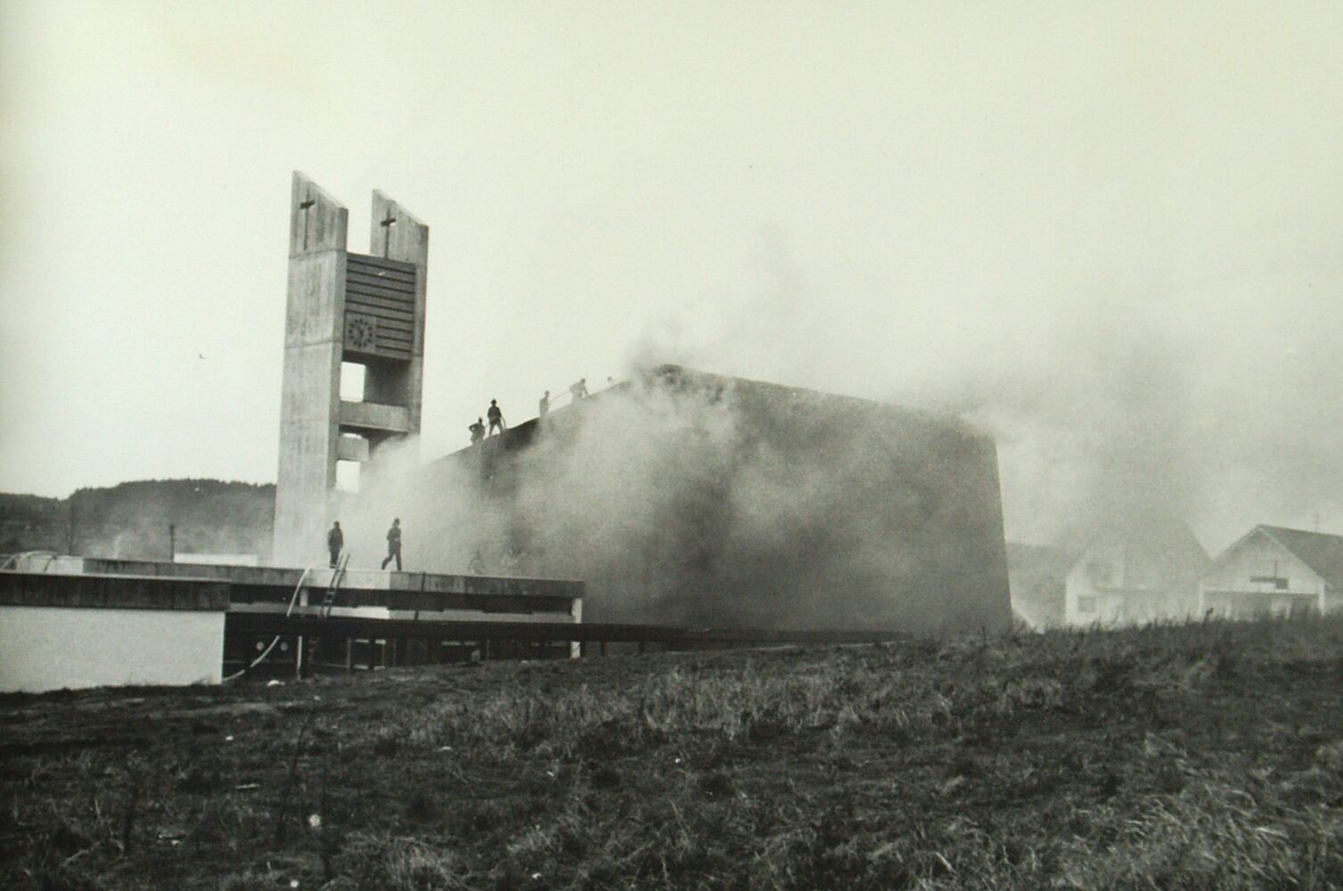 1971 begann der Bau am Kutscherweg nach den Plänen des Diplomingenieurs Gerhard Aeckerle aus Pforzheim – mit einem tiefen Einschlag, wie sich heute Klaus Leonhardt, der als junger Zimmermann selbst mit anpackte, zurückerinnert: Im November 1973 setzte flüssiger Kunststoff aus einem Bitumenofen, der für den Bodenbelag benötigt wurde, die fast schon fertiggestellte Kirche in Brand.