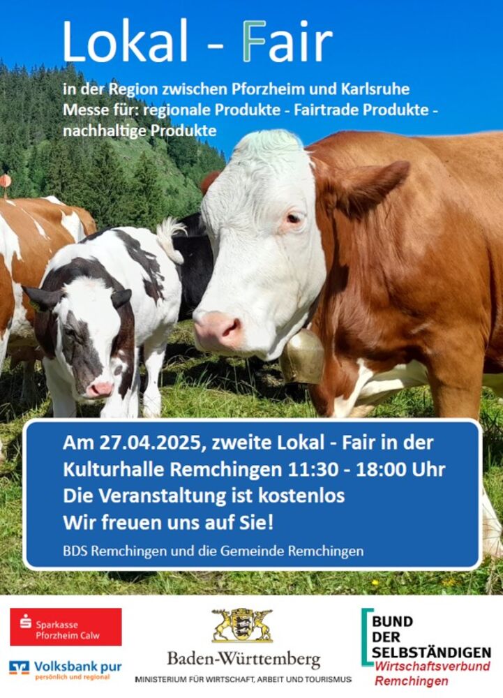 Die „Lokal-Fair“ findet von 11.30 bis 18 Uhr in der Kulturhalle statt. Über ein Dutzend lokaler Anbieter aus Remchingen und der Region präsentieren ihre Ware und bieten diese auch zum Kauf an. Darüber hinaus stehen sie allen interessierten Besuchern Rede und Antwort über Produktionsweisen und Herausforderungen.