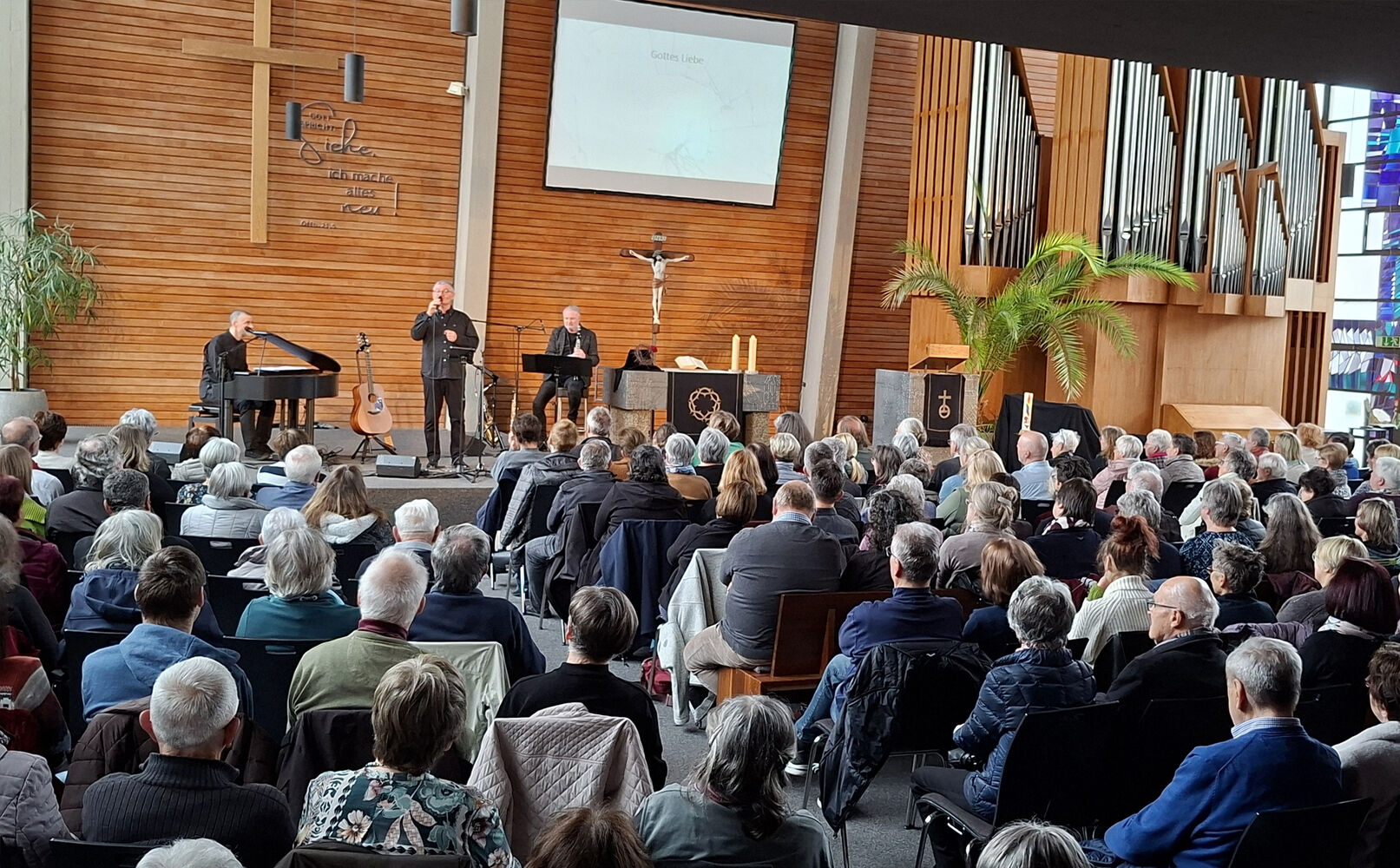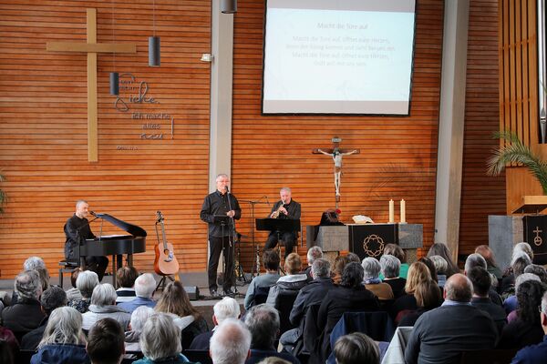„Nach der englischen Übersetzung ist der Karfreitag eigentlich ein Kar-Freu-Tag“, begrüßte Diakon Patrick Zipse zum Konzert, das Sandra Bodemer und Stefanie Bratzel für die evangelische Kirchengemeinde Remchingen organisiert hatten, „Wir wissen schon heute, dass das noch nicht das Ende der Geschichte ist.“ Auch Zehendner spannte den Bogen über die Leidensgeschichte und Kreuzigung Jesu hinaus bis zur Auferstehung: „Das Konzert könnte mit dem Grab Jesu enden, aber ich schaff das nicht: Ich möchte noch ein bisschen weiterlesen in der Bibelgeschichte.“ Zwischen bekannten Liedern, die die Besucher textsicher begleiteten, hatte der 65-Jährige auch einige neue Kompositionen mit dabei. Begleitet am Saxophon und der Klarinette von Jürgen Weiß sowie am Piano und Gesang von Ralf Schuon machte Zehendner immer wieder von Neuem Mut zum Glauben.