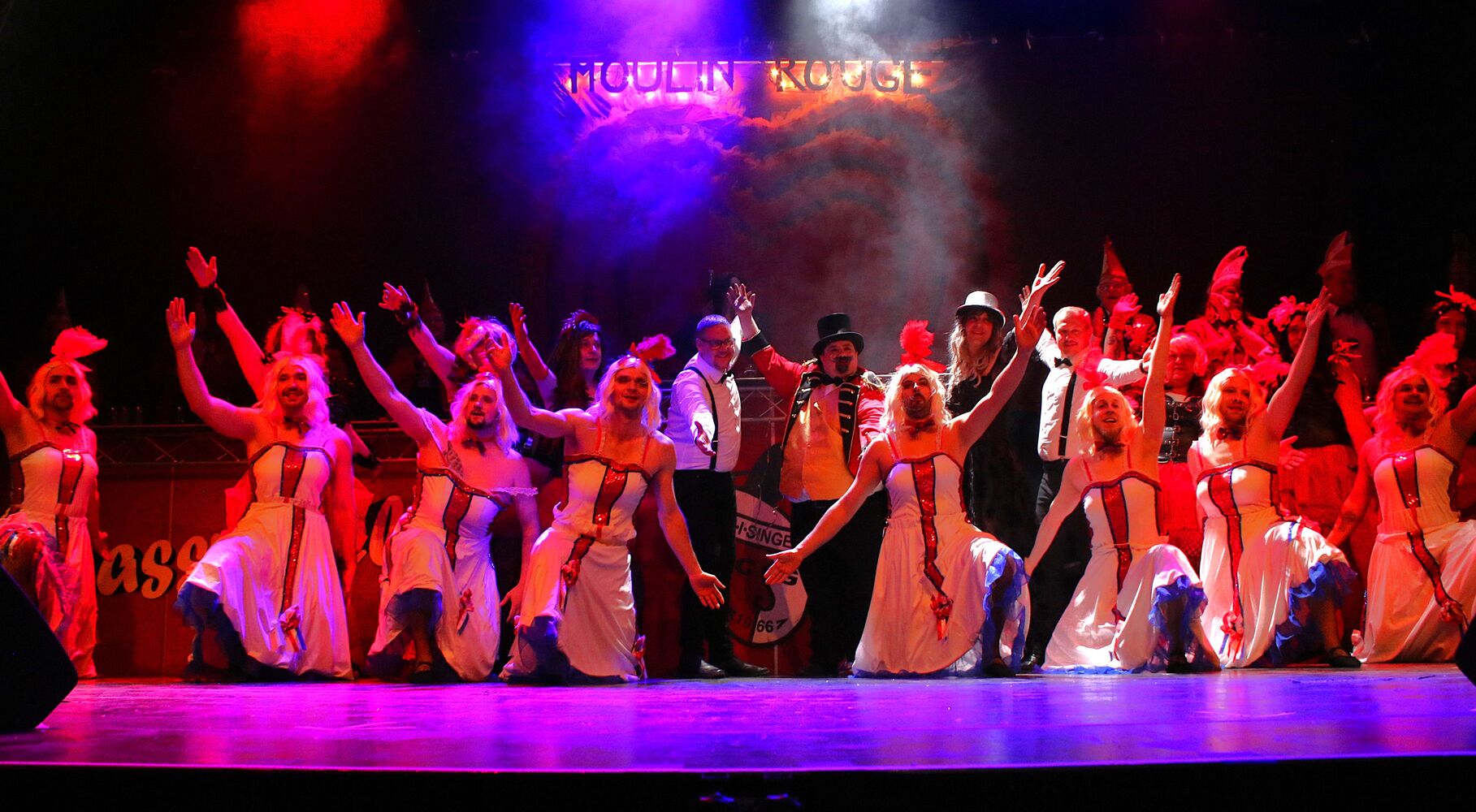 Während die Töpfleshexen für schaurige Momente sorgten, gab es beim Auftritt des aufwändig vorbereiteten Männerballetts kein Halten mehr: Die von Alexandra Sebastian und Michelle Förster trainierte Truppe um Robin Leonhardt als französischer Nachtclubbesitzer entführte ins Pariser Varieté, bevor Stimmungskanone Marius Neumann aus Königsbach-Stein auf den Tischen tanzte und sich mit allen Aktiven auf ein Wiedersehen an Fasching freute.